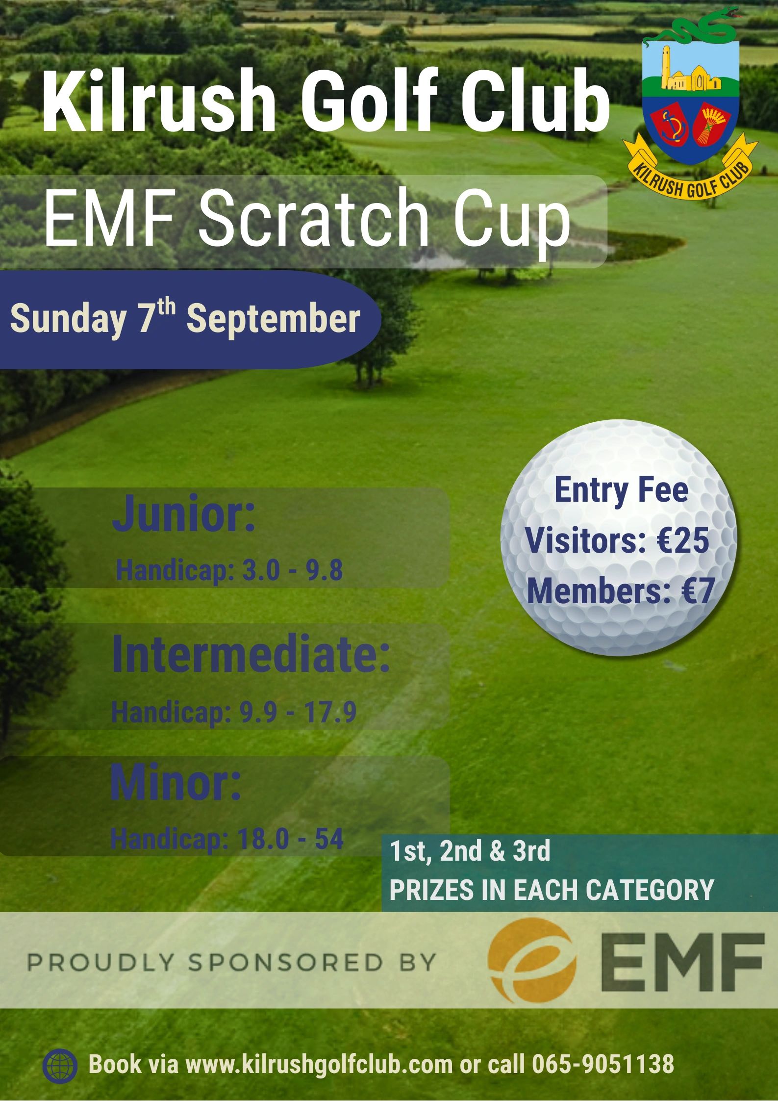 Kilrush Golf Club is proud to host the EMF Scratch Cup on Sunday, 7th September.